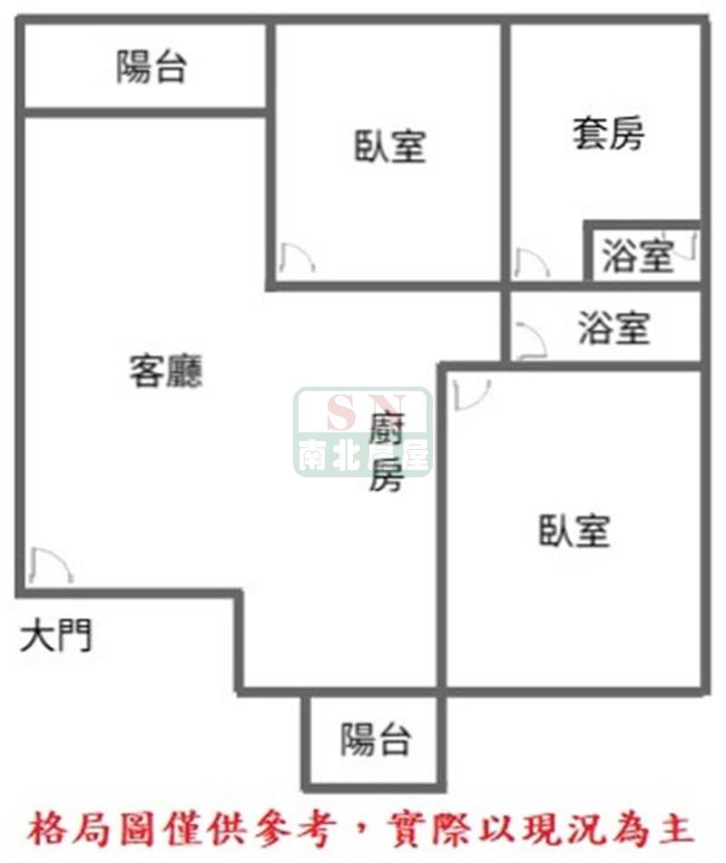 3房 2 廳 2 衛 2 陽