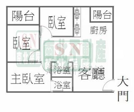 3房 2 廳 2 衛 2 陽