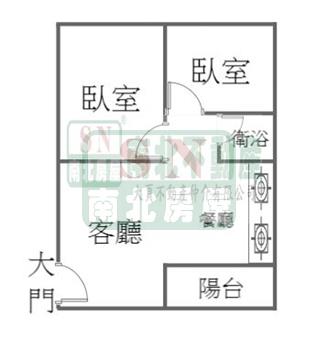 2房 2 廳 1 衛 1 陽