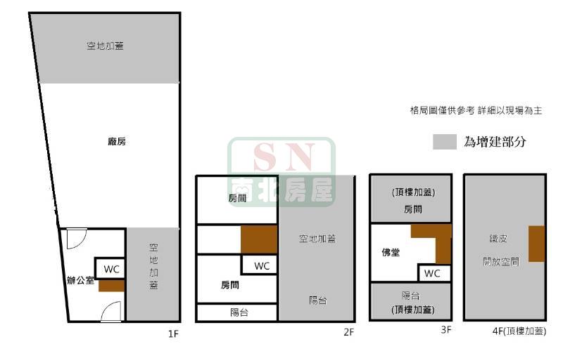 3樓4樓增建,總坪數約60坪. 目前出租..