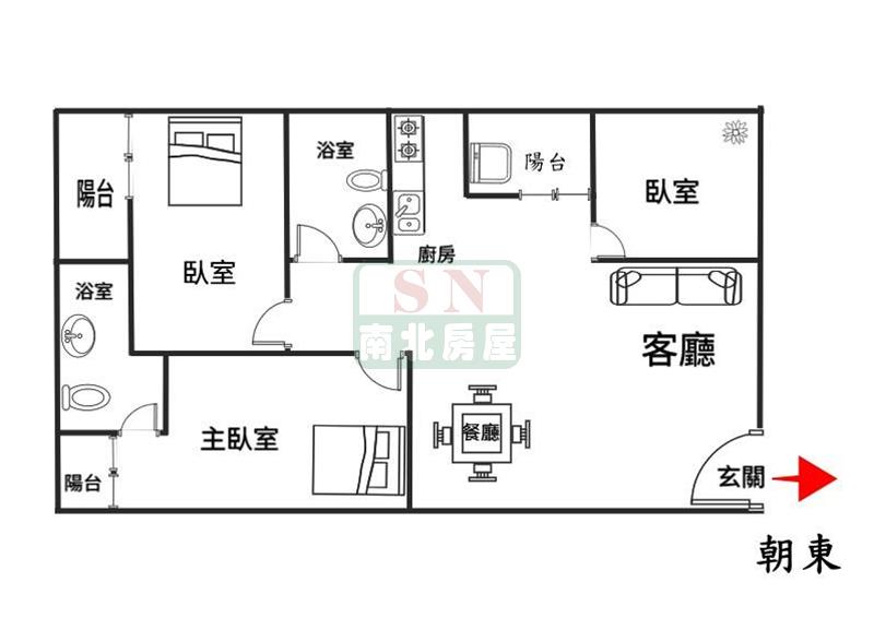 3房 2 廳 2 衛 3 陽