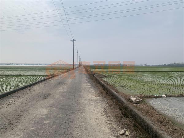 目前種植水稻,臨路面寬約29.8米,縱深約100.6米,地形平坦方正,出入便利